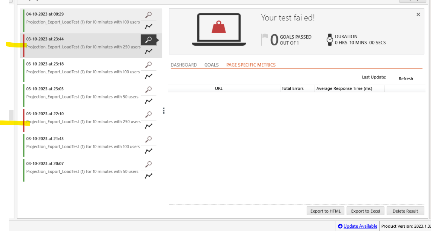 so, I have run same test for 250Users and observe that for 250Users I'm not getting any collected metrics on the Analyze view after test execution.