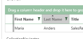 To modify only the filter icon's color when a filter is applied, the default ControlTemplate of the FilteringDropDown element can be extracted and modified. More specifically, the second Path element's Fill property can be set to the desired value (currently, it uses the accent color of the Windows 8 theme).