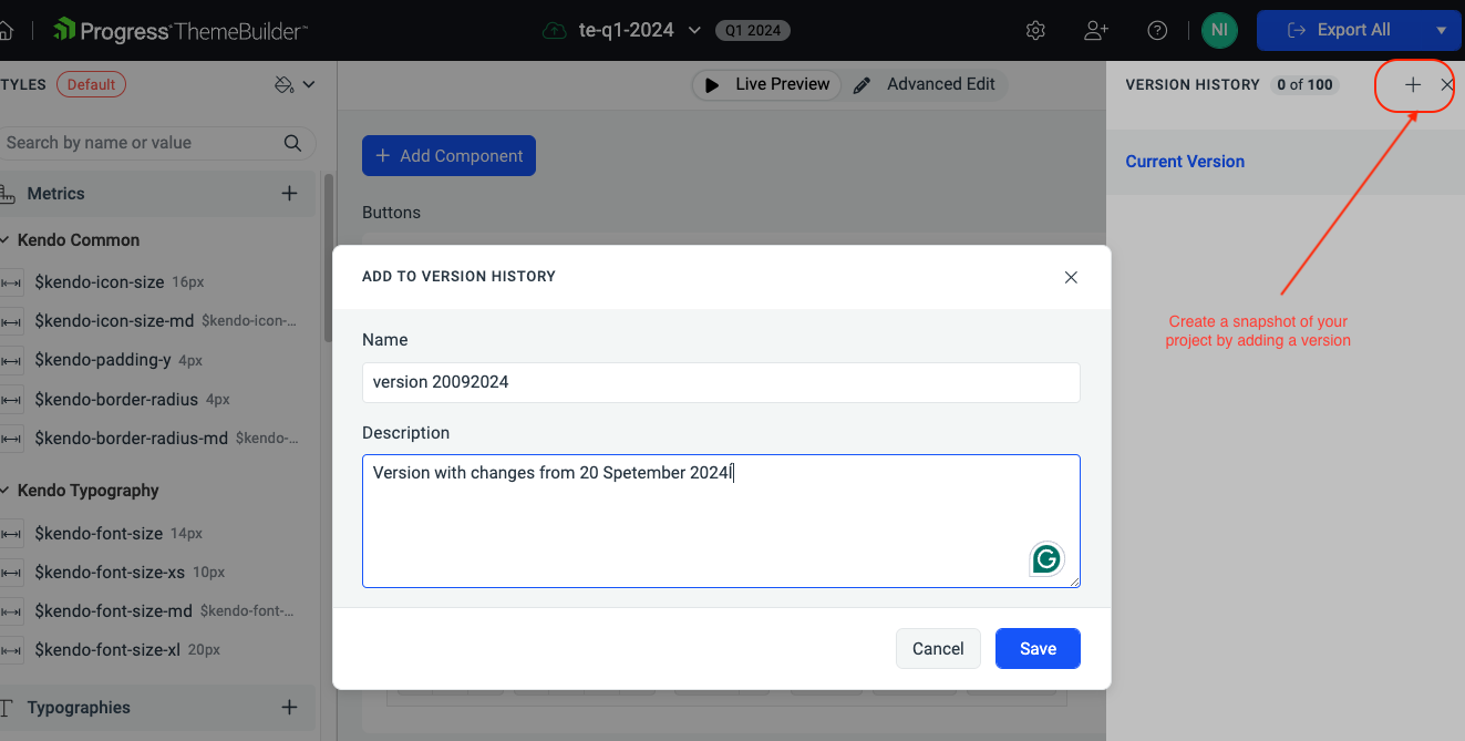 Is there any way to save different versions of a project?