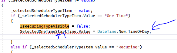 How I set value  SelectedOneTimeStartTime in runtime ?