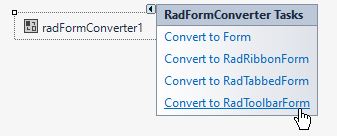 Hi, Atfat, If the RadToolbarForm doesn't appear in the list of the RadFormConverter, I suspect that you are using an older version in which the form is not available. Could you please confirm the Telerik version you are currently using? Make sure that no older versions are available in the GAC. The following KB article demonstrates a sample approach how to do it: https://docs.telerik.com/devtools/winforms/knowledge-base/examine-the-gac