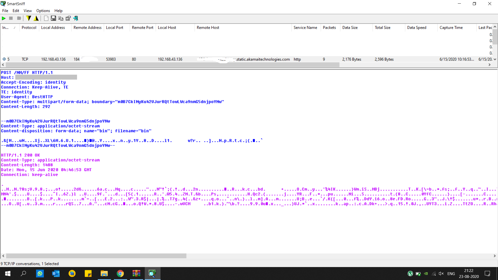 Same happens with me when I'm trying fiddler Http request aren't captured whereas on SMSniff or Wireshark its capturing perfectly fine.