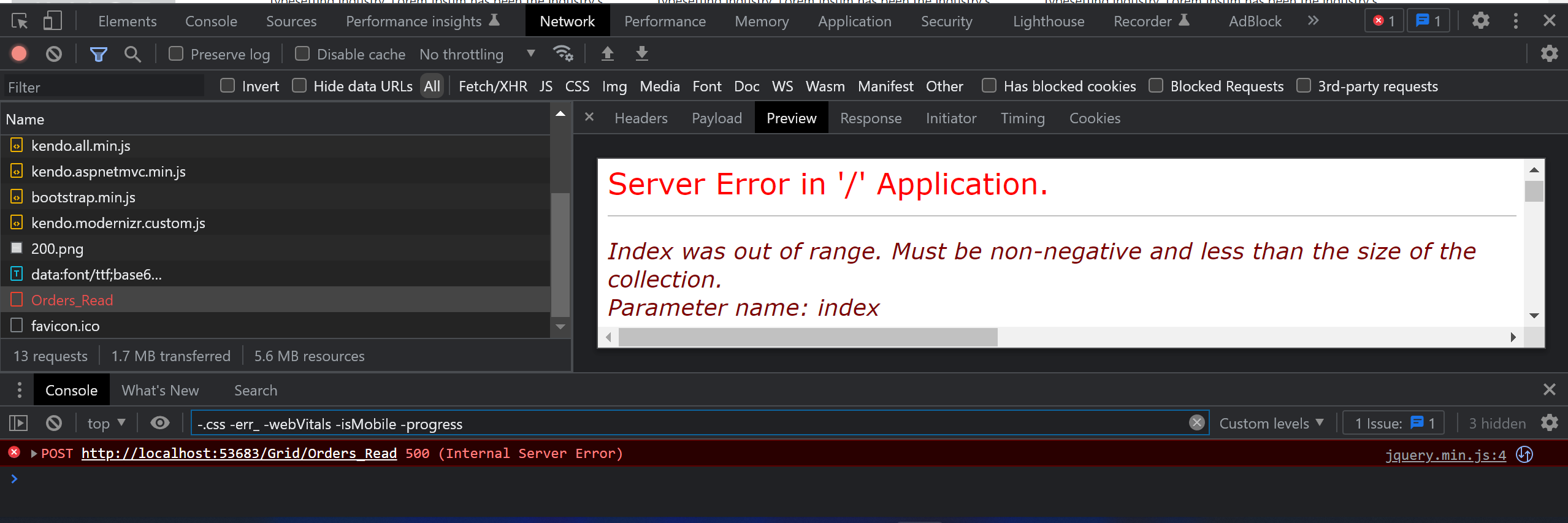 The error i get when trying to update the row is a generic: POST http://localhost:16922/Rackhouses/RackhouseTreeList_Add 500 (Internal Server Error)