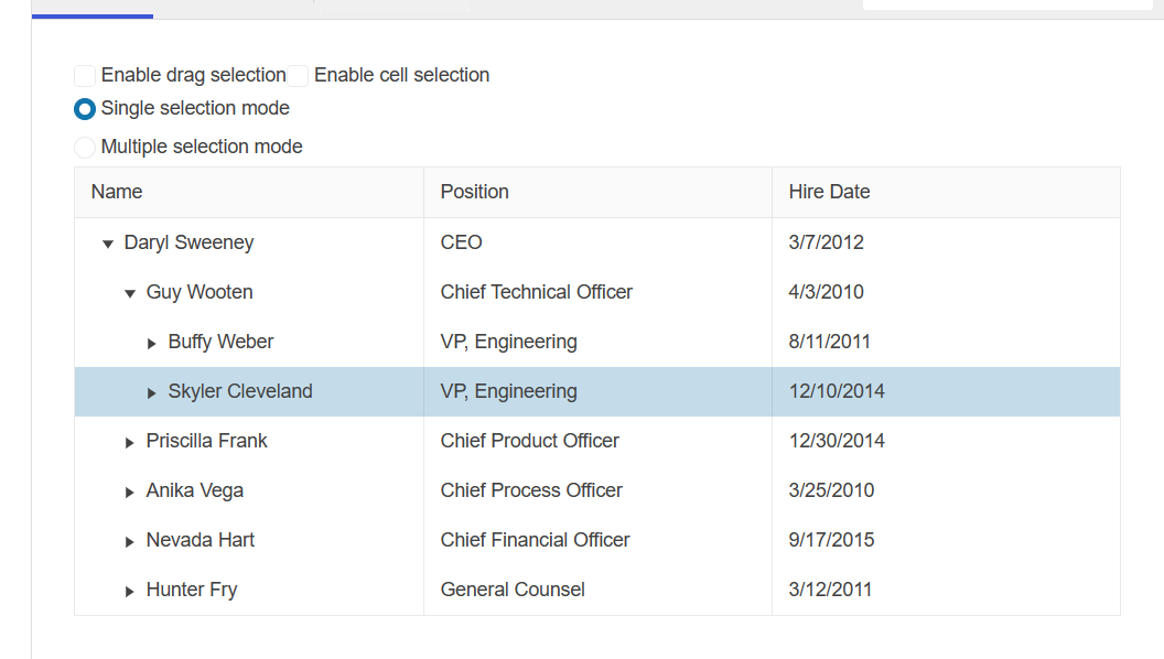 Desired result: Expanding should not select the data item. Clicking on the expand icon and selecting the data item should be separate.