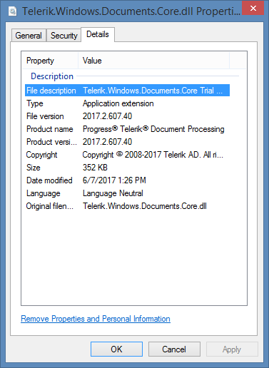 You can check whether the version you are using is a trial one through the File Description property of Telerik.Windows.Documents.Core.dll. I am attaching an image to show where this property can be found.