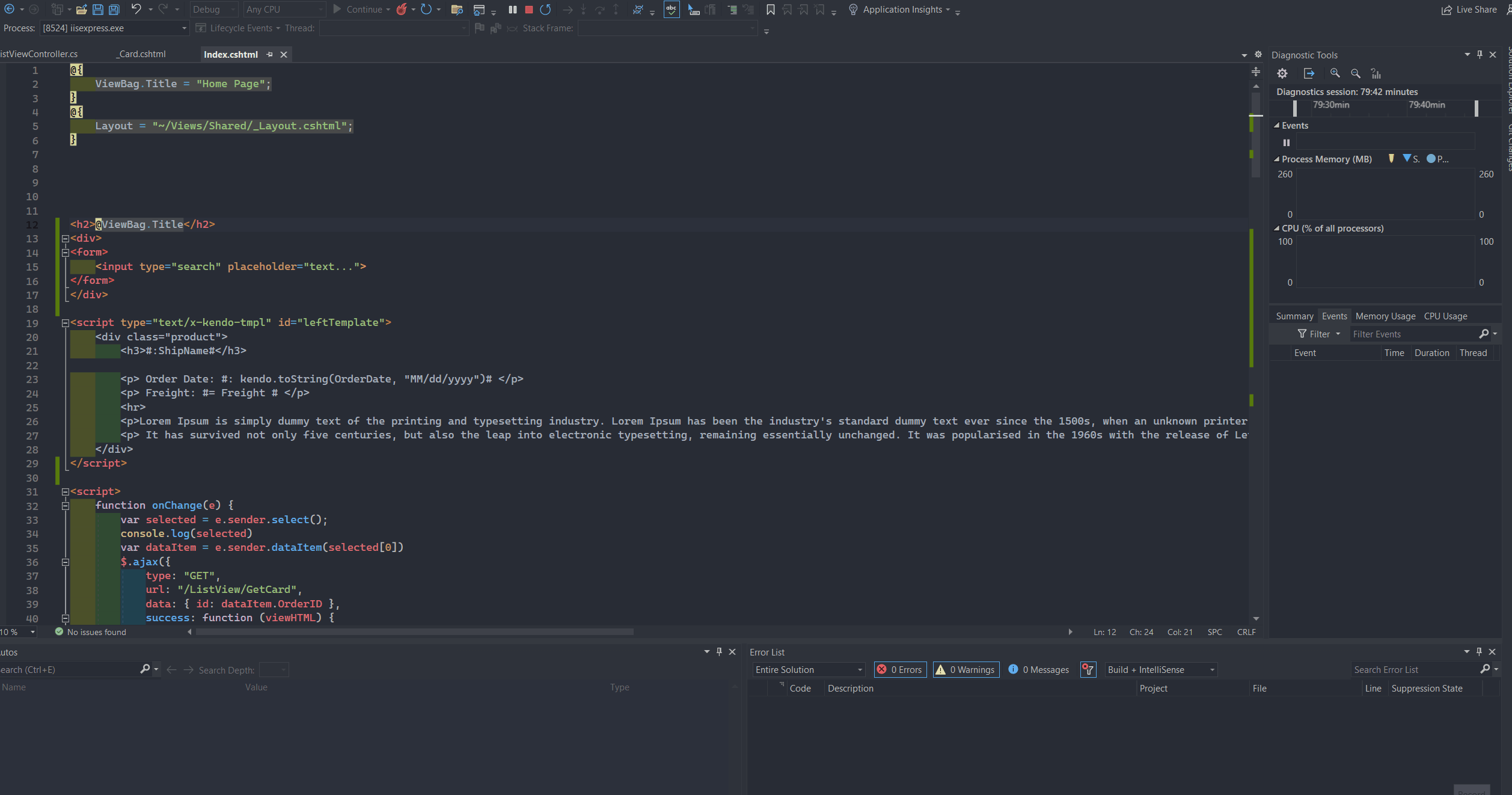 For the entire code and to review the behavior run the REPL example. Although the REPL runs on ASP.NET Core the required configurations of the ListView and SkeletonContainer as well as the JavaScript and CSS customizations in this example are identical for both Telerik UI for ASP.NET Core and ASP.NET MVC.