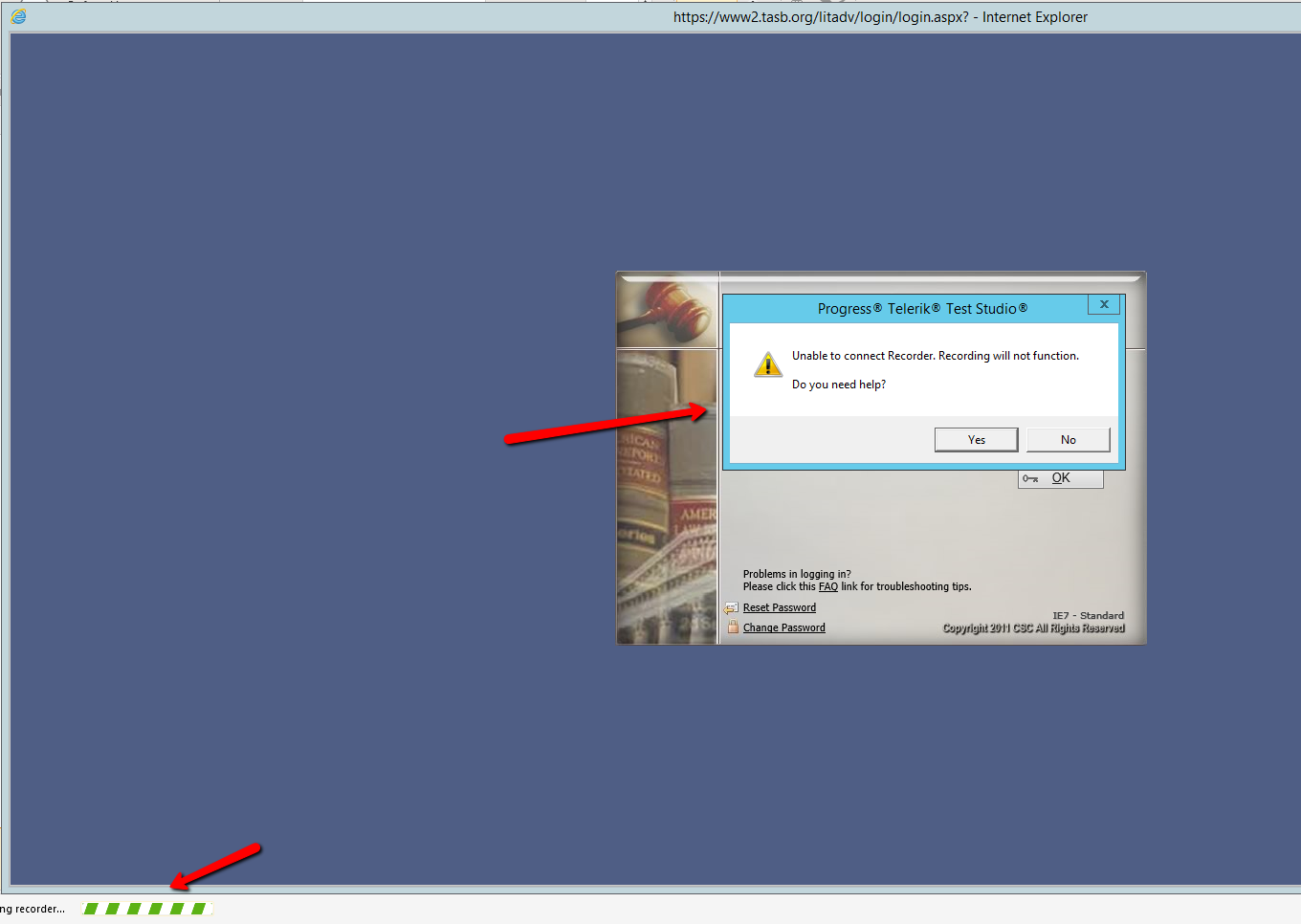 When tried to record , Telerik recorder is not responding. Getting error . screenshot attached.