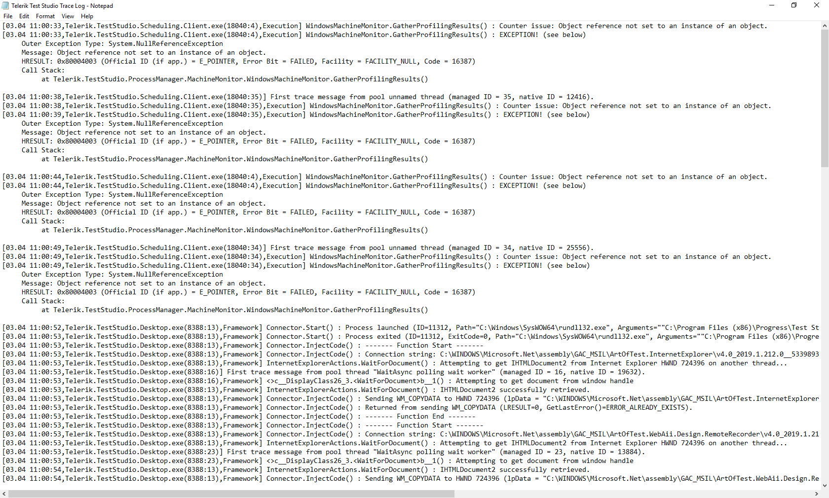 Could you please check if it helps you to investigate further.