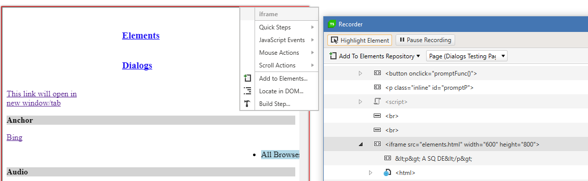 In our application we have some web elements having tag name 'iFrame', we are unable to check the verification on such elements using Highlighter of the recording option.