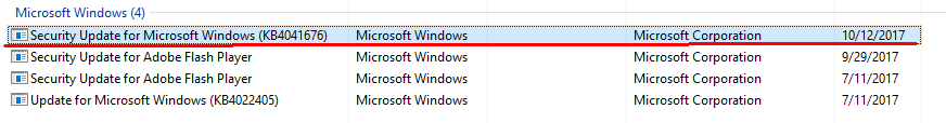 Unfortunately I also do not have a machine with WIndows 7 to double check that. What I could confirm is that the Update was pushed by Microsoft on 10/10/2017. having that on mind you could double check which are the updates installed on that day or few days later depending on your company policies and read further on the web for these particular updates.
