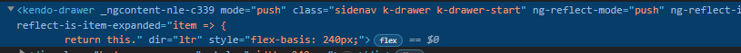 I'm currently implementing the kendo-drawer for navigation in my application. I have most things working but am running into an issue with styling.
