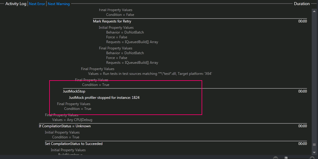 After checking in the modified template I ran my build. It failed.