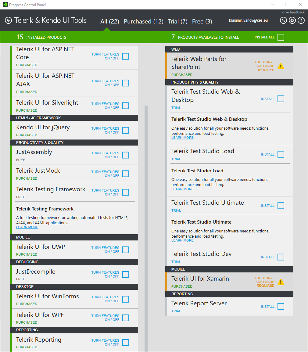 I received popup notifications that 2 new versions of my installed Telerik tools were available and need to be updated.