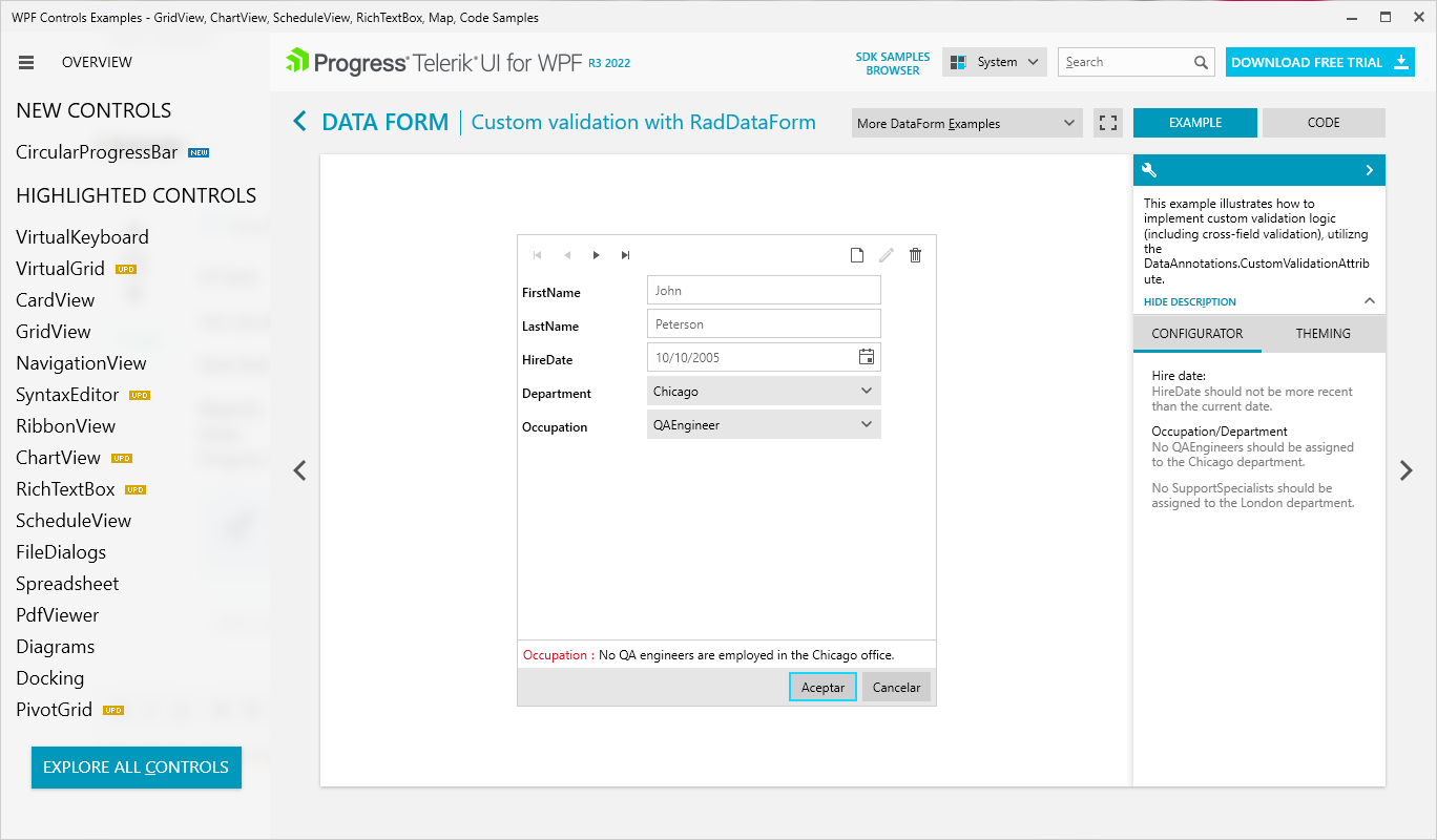 Sorry for the confusion, I'm asking for the label at the right of the field. In the samples, the error message appears in the button of the rad data form. Thanks in advance.
