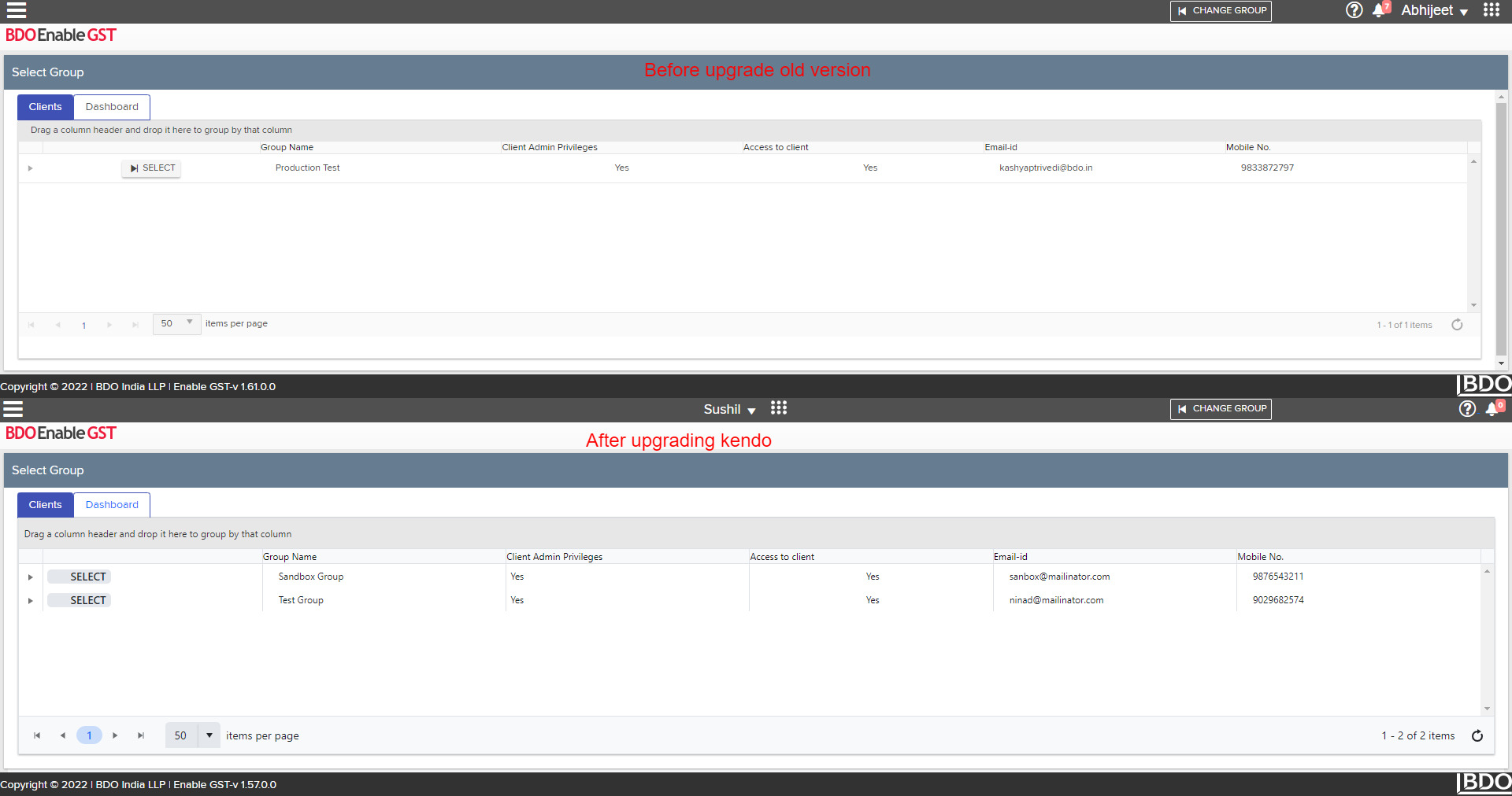 • Some classes were changed in the new js say buttons in the kendo grid.