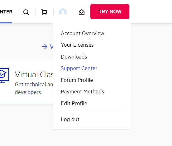 You can log in to your Telerik account, hover your avatar, and select Support Center from the dropdown: