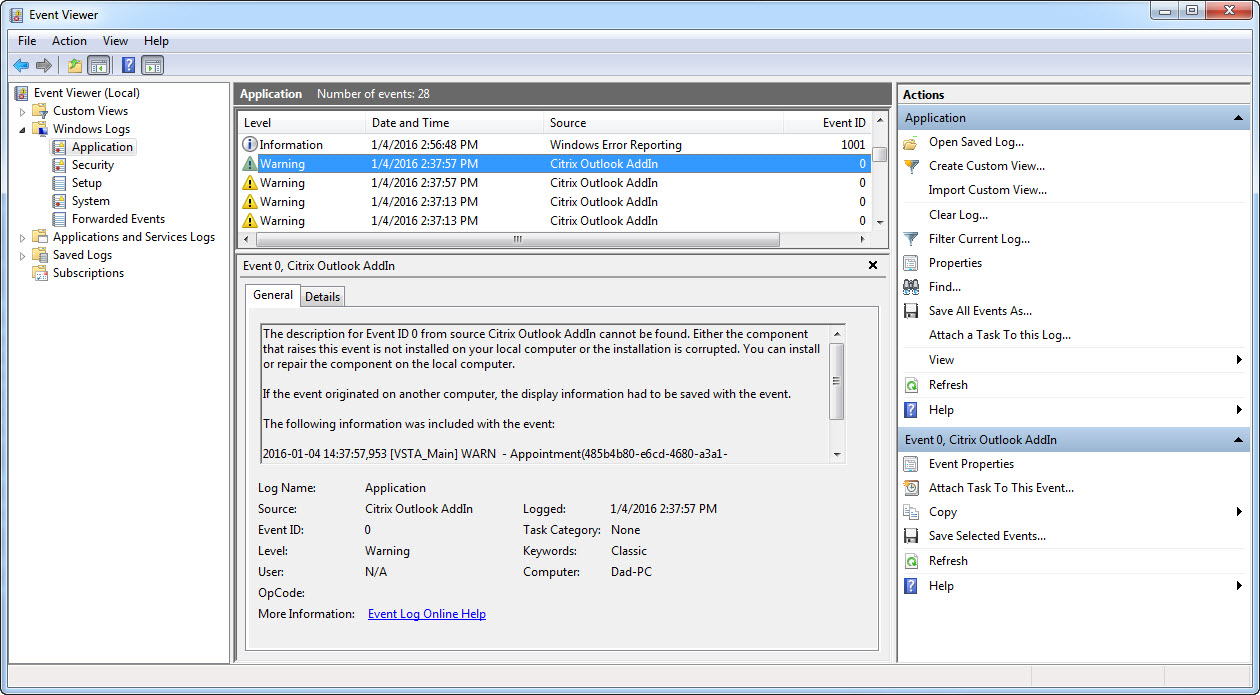 What exactly did it say in the command prompt window? If you look in the Windows Event Viewer (see attached screen shot for a reference) do you see any entries relating to the failed install? We need to find some sort of error message that indicates what the problem is.