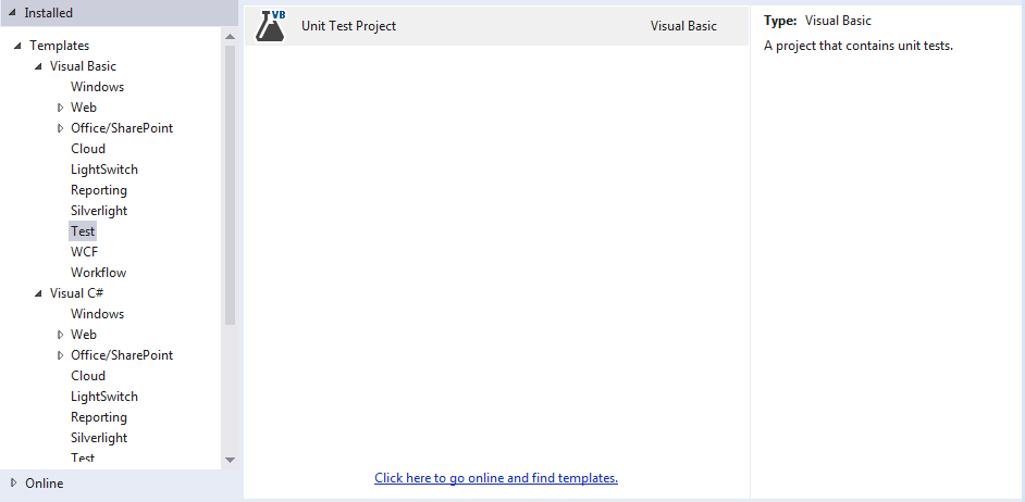 I am using Visual Studio Professional 2013. Yes, I am seeing the test templates available. Attached is a screenshot.