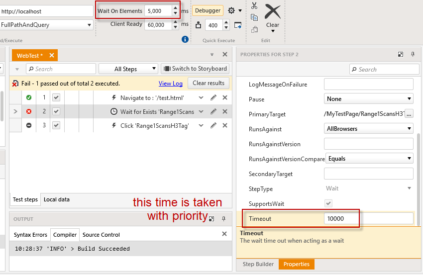 I'm experiencing issues with a "Wait.ForExists" step. I've set this step to wait 60sec for the element im looking for. But it produces a "Element Not found!" exception before this 60sec are through (it waits around 15sec). In addition I added a simple wait step before the "Wait.ForExist" step and it worked just fine. I understand that this proves that the element identification is correct.