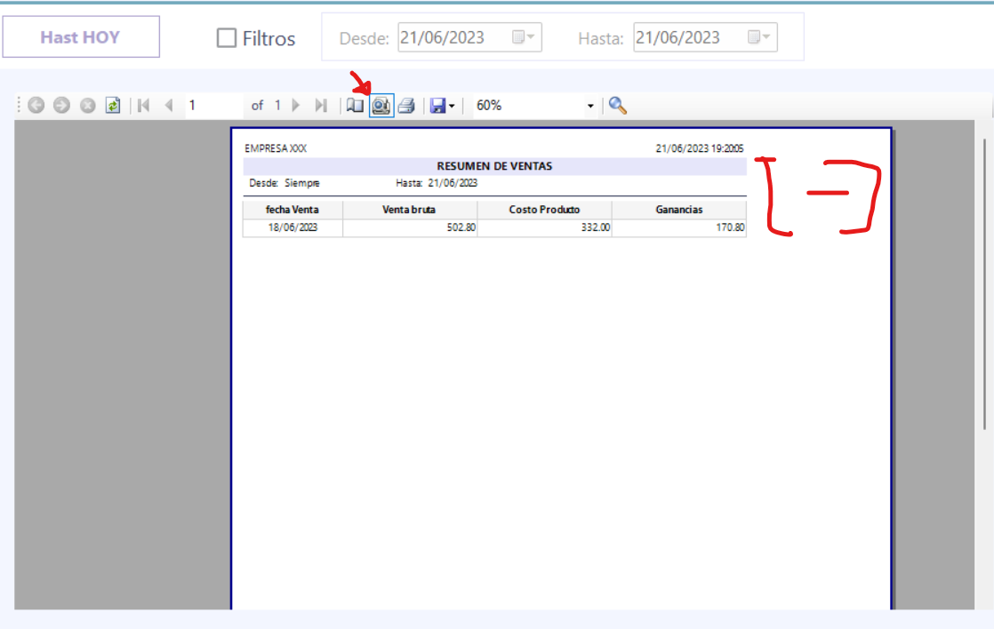 Image 04 - It is seen when I click on the print or preview icon (any of the two) and the blank space on the sheet is displayed. Even when printing a physical document, the additional space is shown.