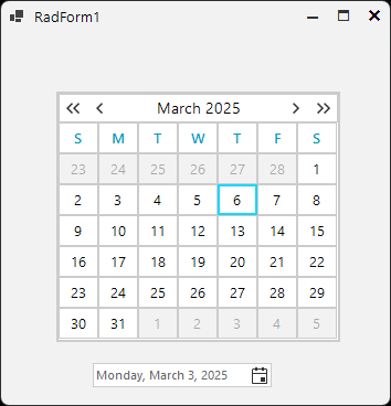 Using the following Nuget : UI.for.WinForms.AllControls.Net90 version 2025.1.211