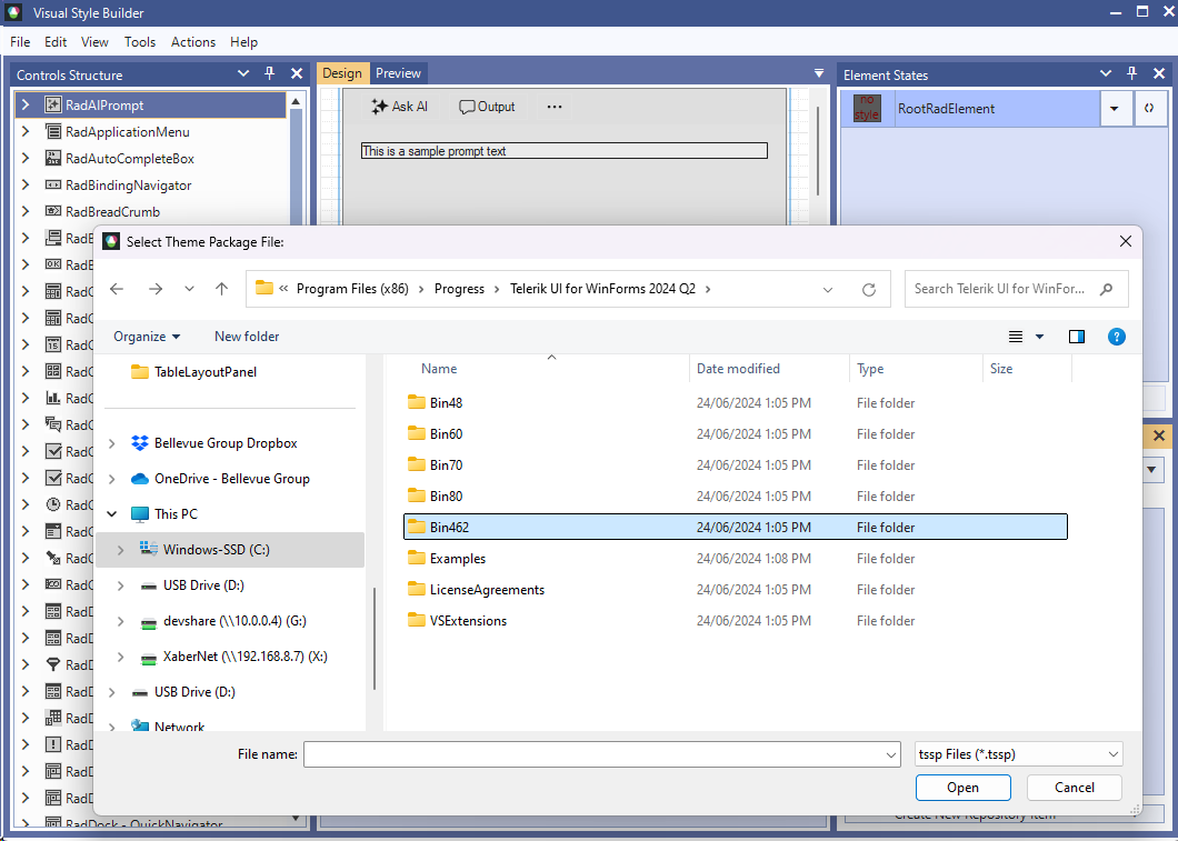 Where are located the .tssp files for the current version of the Telerik controls for Winforms?