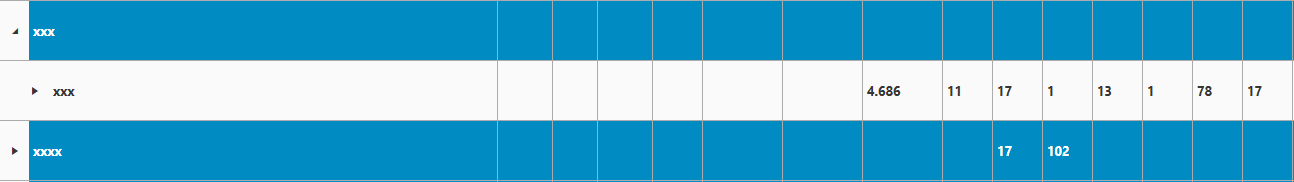 The blue rows are top level and work as expected, any row in any level below does not use the format string.