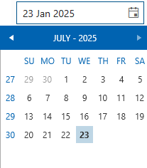 2. Set SelectedDate = DateTime.Now.AddMonths(-6) (e.g., Jan 23, 2025).