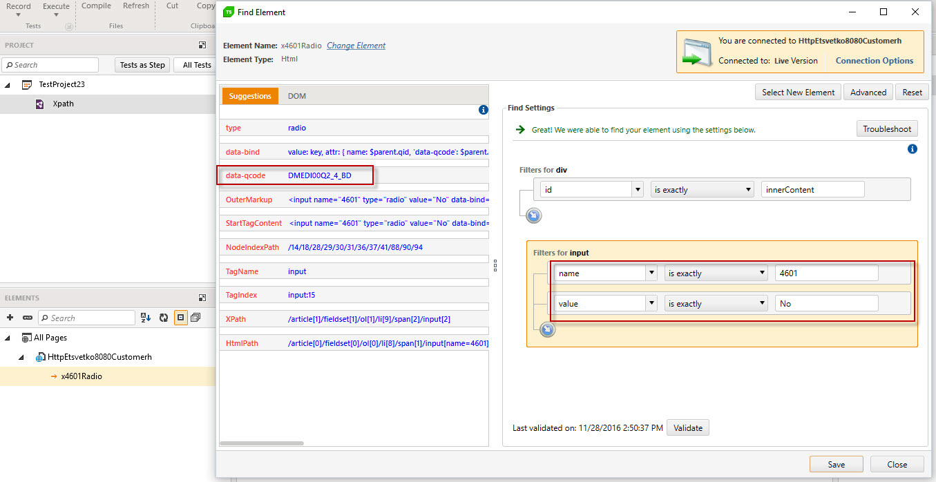 I am trying to define xpath as one of the find settings for an element in the element repository. I am replacing the automatically generated xpath with an xpath that works in the coded step using Find.ByXPath, but the identification fails after the auto generated xpath is replaced.