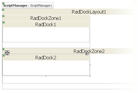 Drag a second RadDock control from the toolbox into the second RadDockZone control (RadDockZone2).