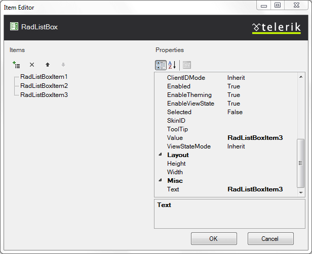 Click on the Build RadListBox link to open the Item Builder. Now use it to add several items: