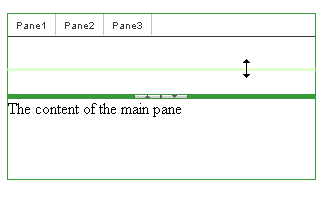 ASP.NET<telerik:RadSplitter RenderMode="Lightweight" runat="server" ID="RadSplitter1" Orientation="Horizontal" Width="90%" Height="90%"> <telerik:RadPane runat="server" ID="RadPane1" Height="80px"> <telerik:RadSlidingZone runat="server" ID="RadSlidingZone1"> <telerik:RadSlidingPane runat="server" Title="Pane1" ID="RadSlidingPane1" Height="50px"> The content of Sliding Pane 1 </telerik:RadSlidingPane> <telerik:RadSlidingPane runat="server" Title="Pane2" ID="RadSlidingPane2" Height="50px"> The content of sliding pane 2 </telerik:RadSlidingPane> <telerik:RadSlidingPane runat="server" Title="Pane3" ID="RadSlidingPane3" Height="50px"> The content of sliding pane 3 </telerik:RadSlidingPane> </telerik:RadSlidingZone> </telerik:RadPane> <telerik:RadSplitBar runat="server" ID="RadSplitBar1" CollapseMode="Both" /> <telerik:RadPane runat="server" ID="RadPane2" Height="80px"> The content of the main pane </telerik:RadPane> </telerik:RadSplitter> -