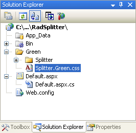 In the Solution Explorer, rename "Splitter.Default.css" to "Splitter.Green.css". The Solution Explorer should now look something like the following: