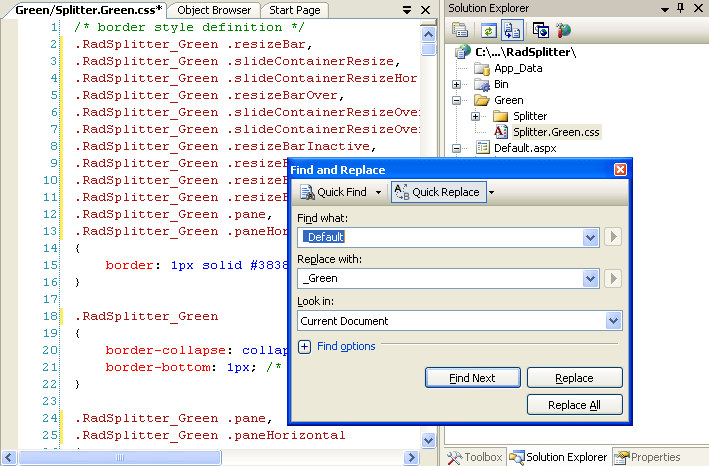 Open Splitter.Green.css and replace all instances of _Default with _Green. Then save the file: