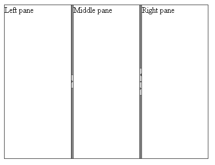 The Vertical orientation renders vertical split bars, which can be moved left and right to resize the width of the splitter's panes. The panes themselves are laid out side by side: