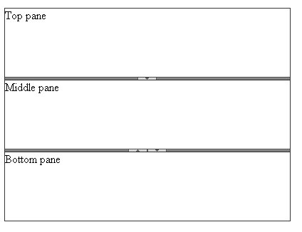 The Horizontal orientation renders horizontal split bars, which can be moved up and down to resize the height of the splitter's panes. The panes themselves are stacked vertically:
