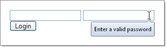 In the second textbox, set the ToolTip property to "Enter a valid password".