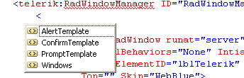 A window pops up letting you choose the template you want to enter:Note that you can enter a template for RadWindow objects that the manager creates as well as for the alert, confirm, and prompt templates.