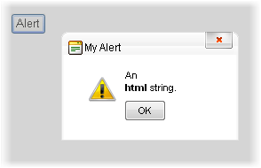 RadWindowManager1.RadAlert("An <br /><b>html</b> string.<br />", 200, 100, "My Alert", "callBackFn", "myAlertImage.png");Strings passed into this method must be properly formatted and escaped for HTML and JavaScript. Please see the related article Calling the Predefined Dialogs from the Server Methods.